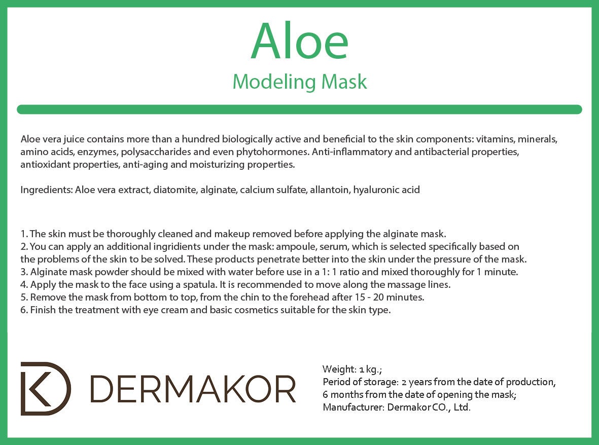 Aloe Modeling Mask – Aloe vera juice contains more than a hundred biologically active and beneficial to the skin components:. Vitamins, minerals, amino acids, enzymes, polysaccharides and even phytohormones. Anti-inflammatory and antibacterial properties, antioxidant properties, anti-aging and moisturizing properties.
